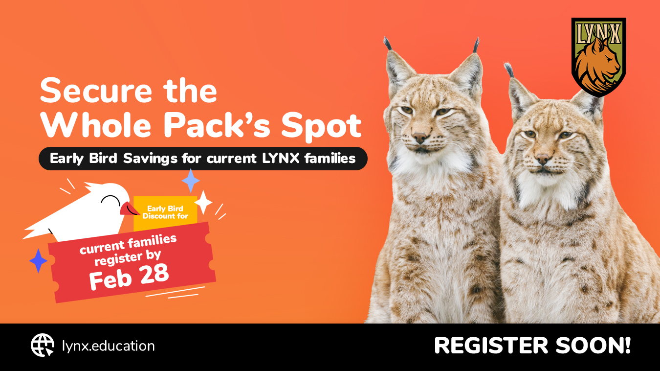 Current LYNX families can take advantage of our Early Bird Discount by completing registration prior to February 28th. By registering during this window, you will avoid the tuition increase scheduled for the 2026–2027 school year.